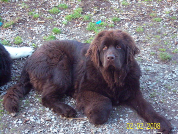 Noah ist mit seinen jetzt 10 Monaten ein sehr hochgewachsenes kräftiges Kerlchen. Er ist bisher absolut liebenswürdig und möchte jedermann Freund sein. Wenn vom Rudel mal einer fehlt wird er sehr unruhig. Beim spielen geht jedoch das Temperament mit ihm durch. Die Welpenspielstunde im Verein nutzte er allerdings für ein ausgiebiges Nickerchen. Er ist ein Sammler und schleppt alle möglichen Gegenstände aus dem Haus in geheime Verstecke wo er sie dann ungestört zerreißen kann. Sachen die sich nicht tragen lassen werden gleich vor Ort zerbissen. Er hat aber einen so hingebungsvollen Blick das man ihm nicht böse sein kann. Neufitypisch ist auch er halt ein Dieb alles Essbaren. Hobby`s: Wasserspiele, Schwimmen, Spielen, Schmusen, Schlafen, Futter, Hausrat reduzieren |